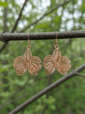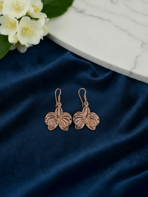 Orchid Flower Earrings – 925 Sterling Silver with Rose Gold Plating